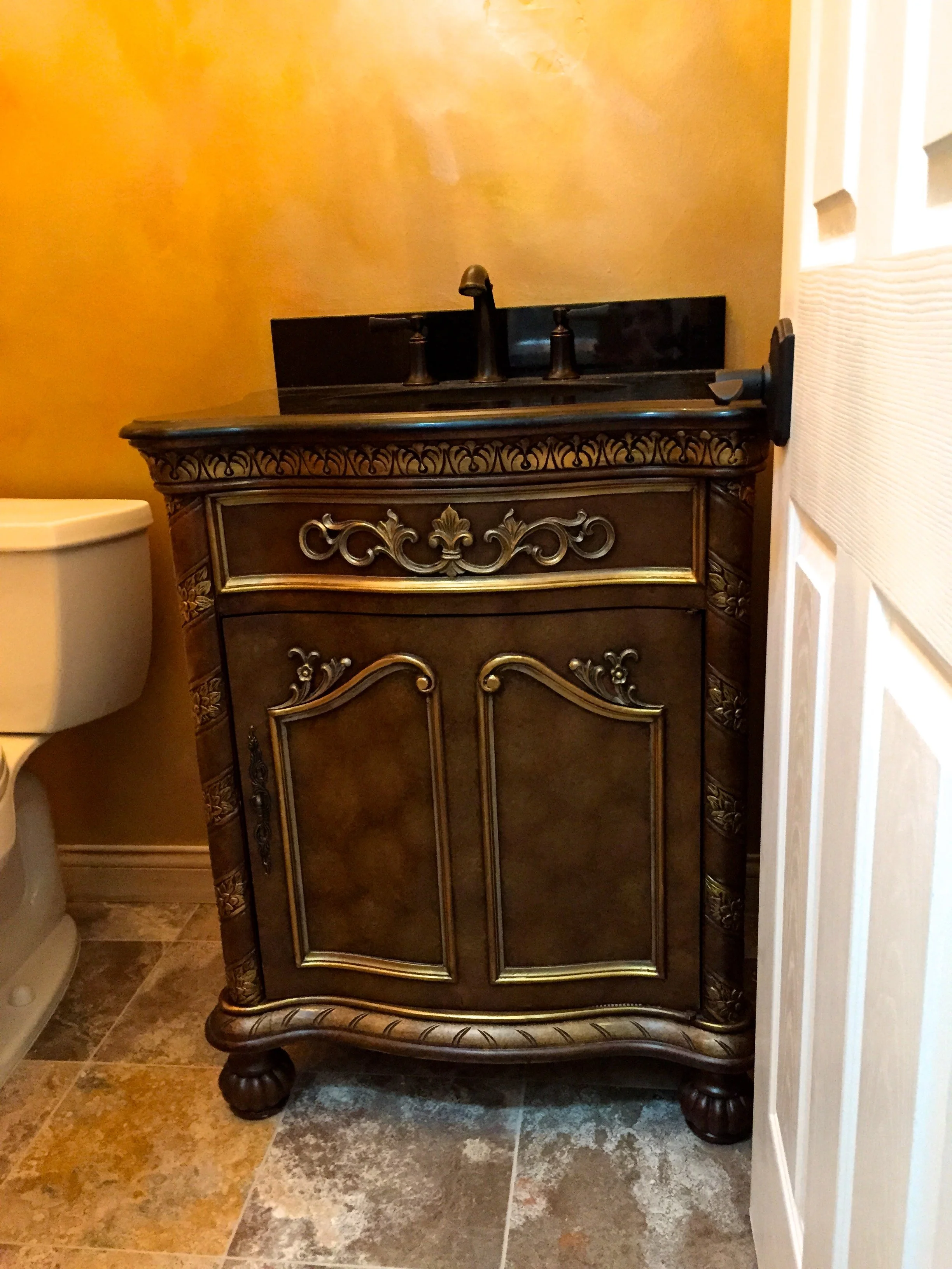 N° 137 BEFORE, BATHROOM VANITY WITH GOLD LEAF ACCENTS